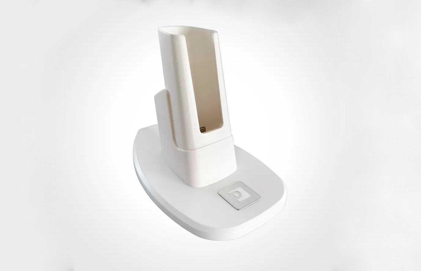 ¡NOVEDAD! La Opticlux Hand puede suministrarse, opcionalmente, con una estación de carga de sobremesa. Ofrece un soporte seguro, una carga óptima y puede convertirse en un soporte de pared. La estación de carga de sobremesa destaca por su diseño único y elegante. Además, puede limpiarse rápida y fácilmente gracias a su diseño liso y compacto.